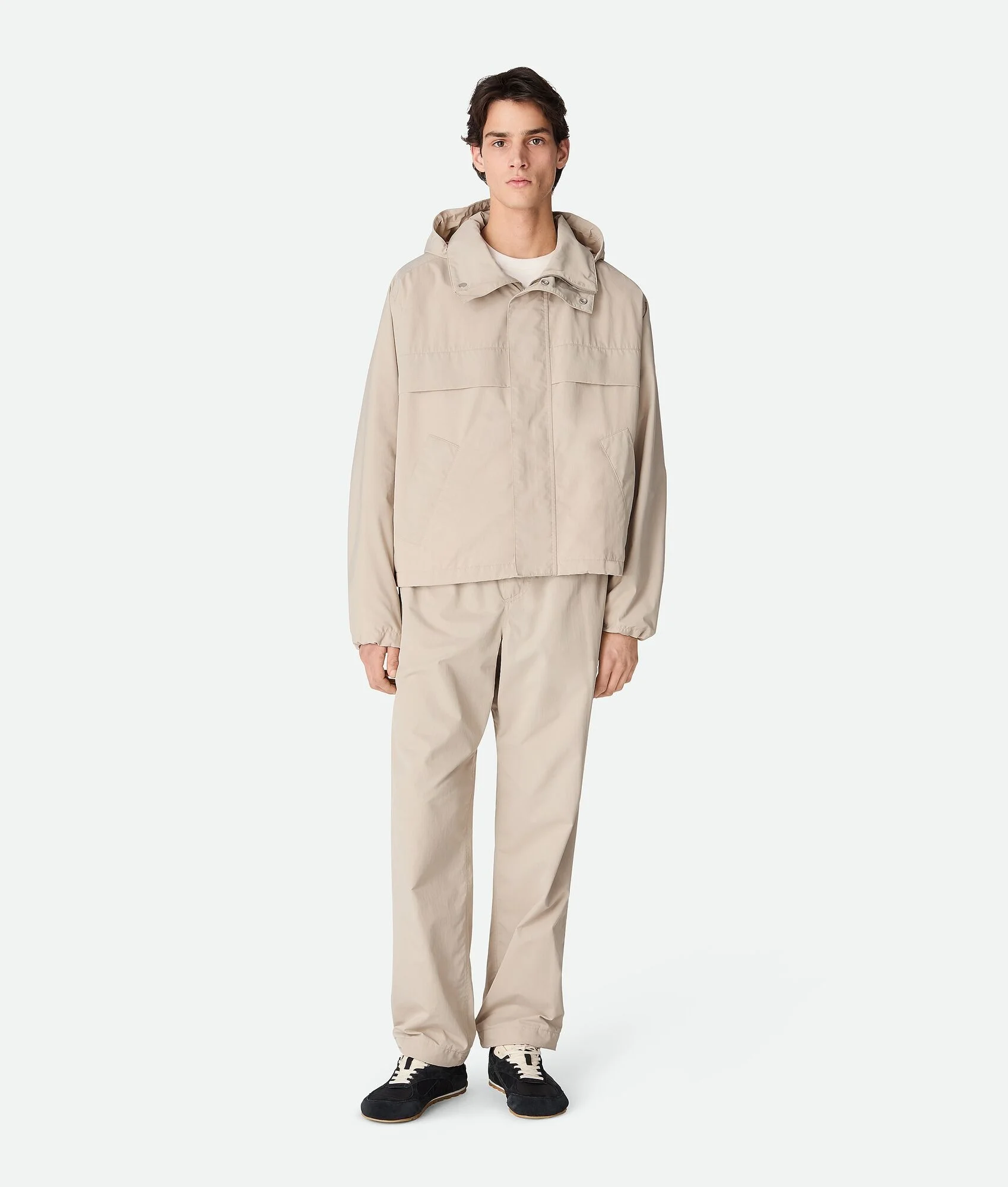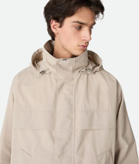 Blouson in washed matte technical nylon with packable hood. Product Details - Washed matte tech nylon hooded blouson - Packable hood - Zipper and snap button closure - Lined - Regular fit - Color: Gray Putty - Made in: Italy - Product code: 837039V5O302674 Size & Fit - Model is 189 cm|6'2" and is wearing a Bottega Veneta size 46