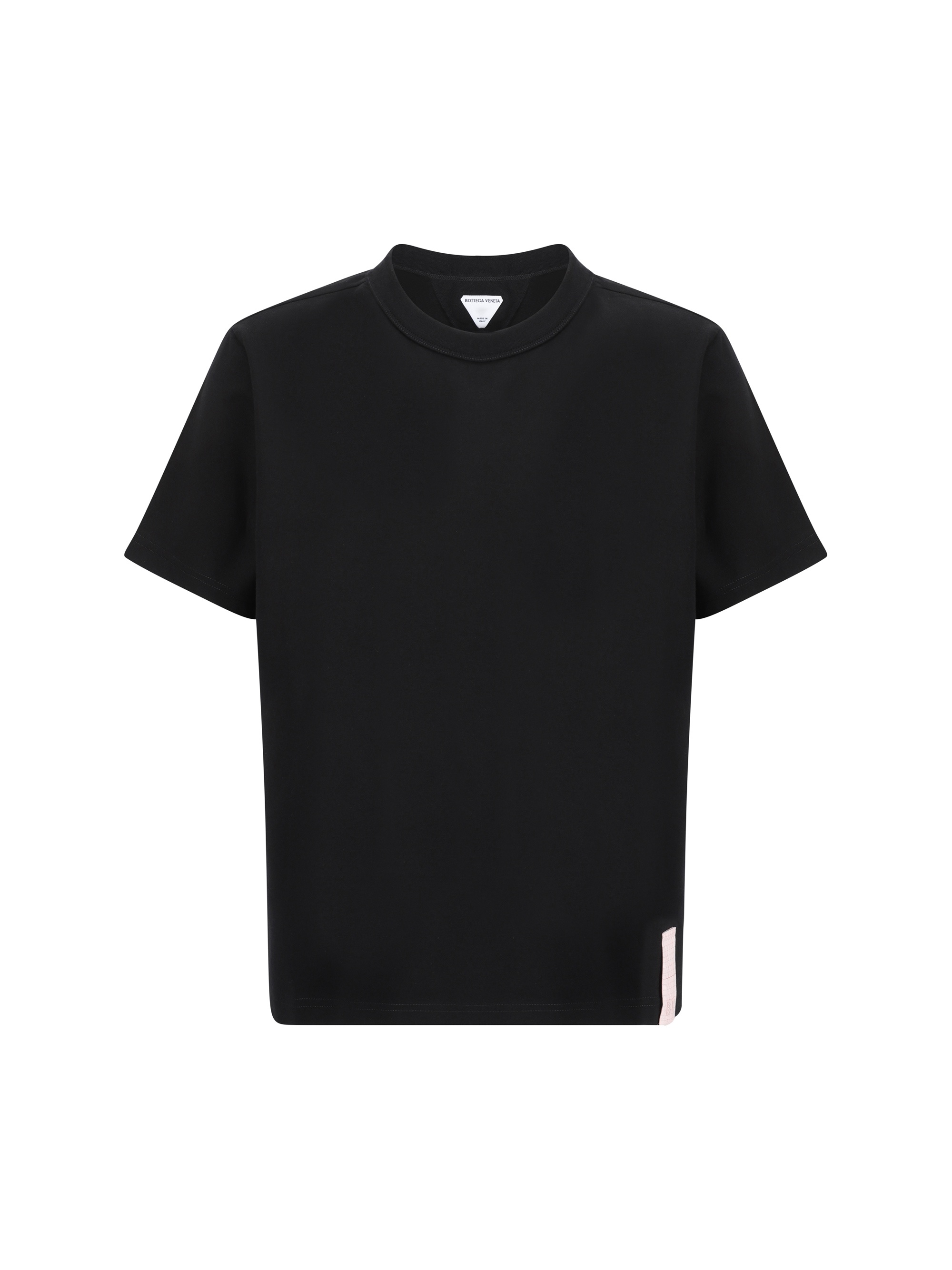 Cotton T-Shirt by Bottega Veneta, patch with iconic brand logo sewn on front, oversize fit. DETAILS sku 804271V4N50_1000 composition: COTTON 100% color group: BLACK gender: MAN season: AW24 size chart: STANDARD category name: T-SHIRTS icon: icon