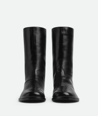 Tubular boot in shiny calfskin leather with zipped back. Product details • Shiny leather boot • Back zip closure Material: Calfskin • Lining: Calfskin • Color: Black • Leather outsole Made in: Italy