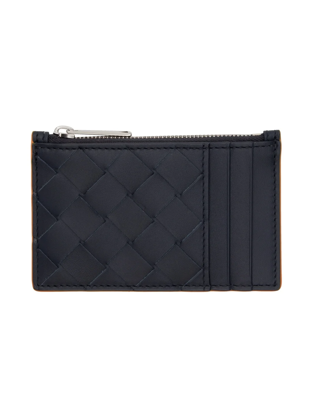 Black & Orange Intrecciato Zippered Card Case