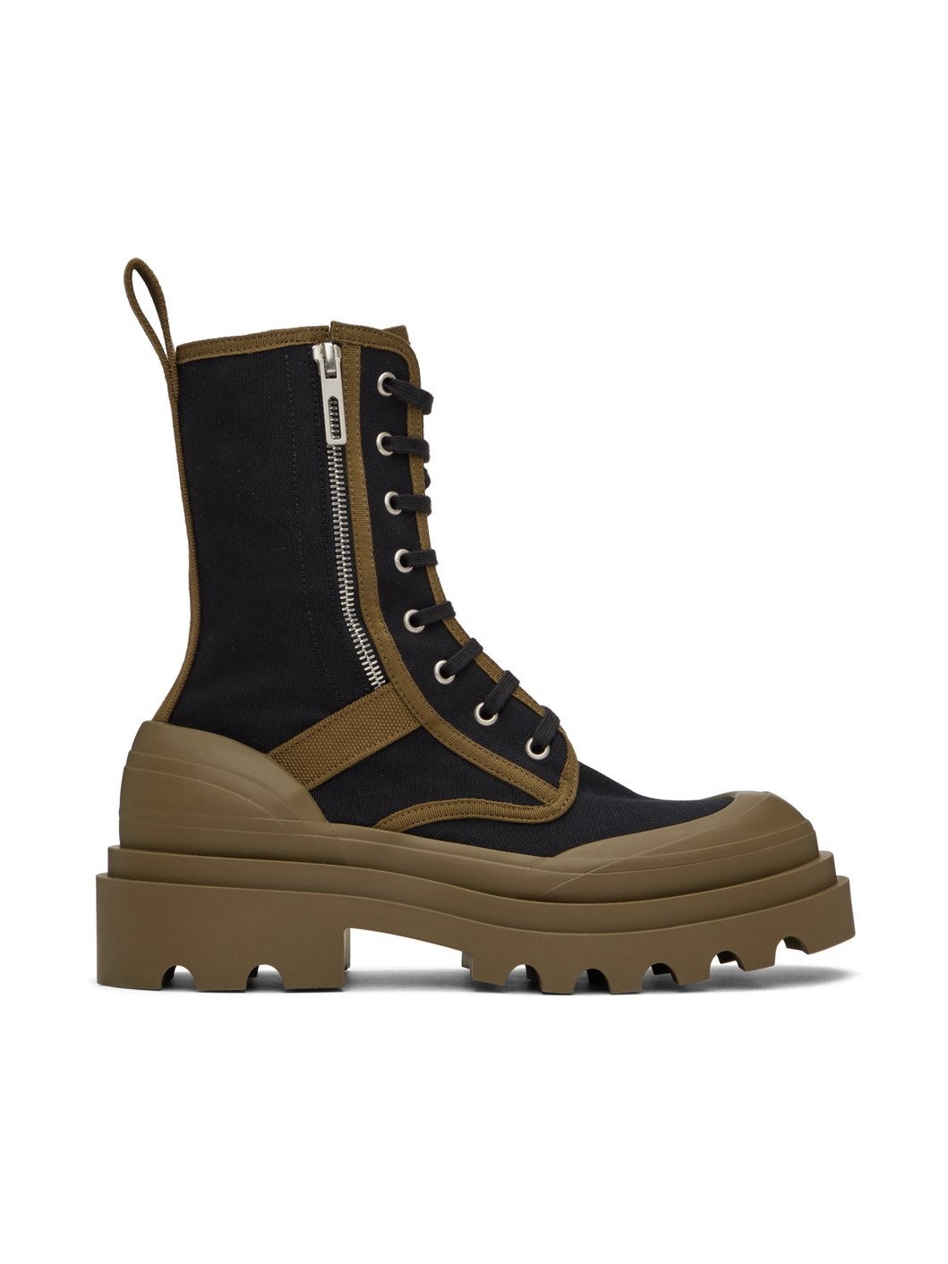 Calf-high canvas boots in black and khaki. · Round rubber cap toe · Lace-up closure · Pull-loop at heel collar · Zip closure at outer side · Rubber trim at heel counter · Tiered rubber platform midsole · Treaded rubber outsole · Platform: H1.5 in · Heel: H2 in Supplier color: Black liana