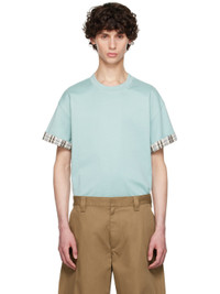 Cotton jersey T-shirt. · Rib knit crewneck · Dropped shoulders · Rolled cuffs · Logo embroidered at inner cuff · Check pattern at cotton poplin lining Supplier color: Steel blue Body: 100% cotton. Lining: 100% cotton. Trim 1: 98% cotton, 2% elastane. Trim 2: 100% polyester. Made in Italy 242798M213000