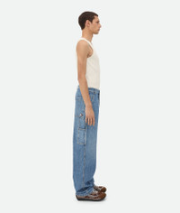 Cargo jeans in vintage indigo washed denim. Product Details - Vintage indigo wash cargo jeans - Regular waist - Special label on the back pocket - Button fly - Material: 82% cotton, 18% polyamide - Color: Mid Blue - Made in: Italy - Product code: 813526V42W04715 Size & Fit - Model is 188 cm|6'2" and is wearing a Bottega Veneta size 46