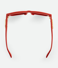 • Recycled acetate rectangular sunglasses • Metal ribbon with resin malachite inserts • Bio nylon lenses Material: Acetate • Color: Orange/Brown Made in: Italy