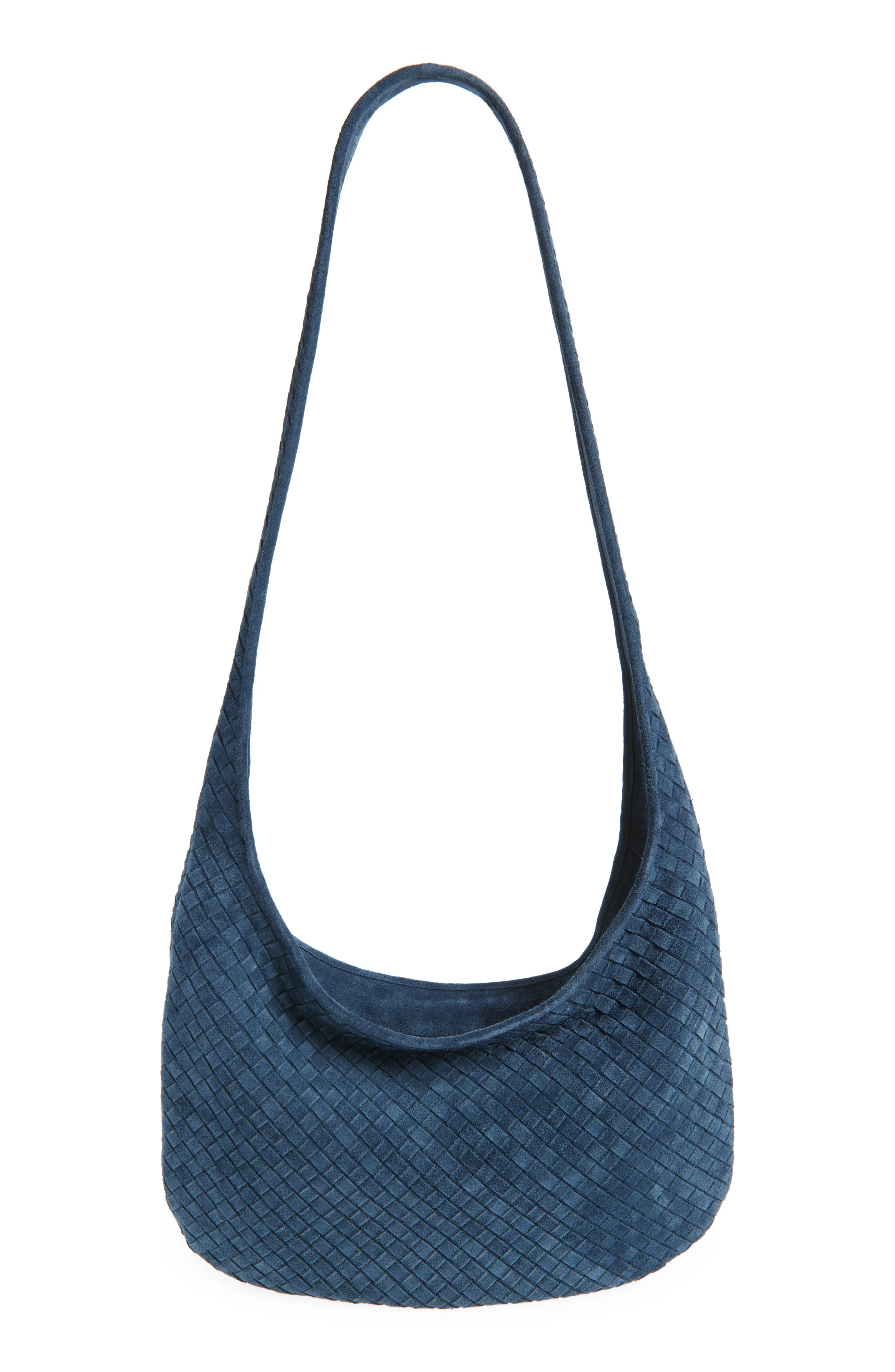 The label's intrecciato weave brings signature texture to this lambskin-leather messenger bag made in a slouchy silhouette with an integrated shoulder strap. 19 3/4" shoulder drop Top zip closure Shoulder strap Leather Made in Italy