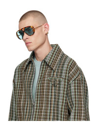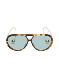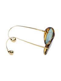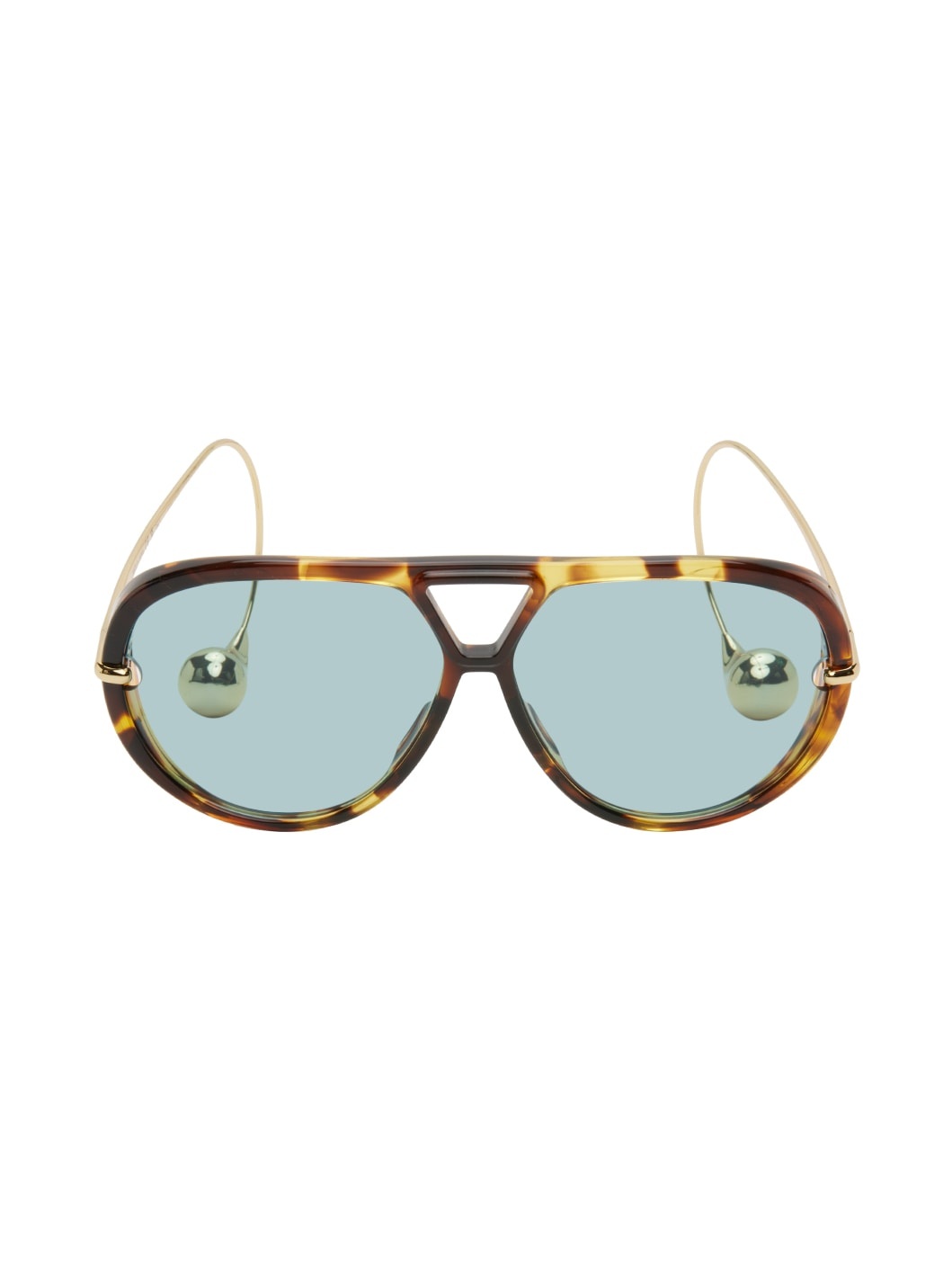 Aviator-style tortoiseshell Eastman Acetate Renew-frame sunglasses in brown. · Blue bio nylon lenses · Integrated nose pads · Cutout at bridge · Logo-engraved gold-tone metal arms · Includes case · Size: 63.12 180 Supplier color: Havana/Gold/Green