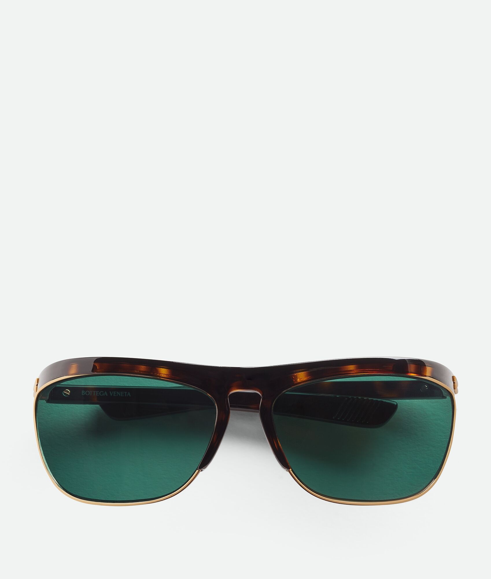 Rectangular sunglasses in injected acetate . Product Details - Lenses made from nylon - BV1348S 002 - Material: Injected acetate - Color: Havana/Green - Made in: Italy - Product code: 810161VBL802835