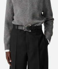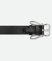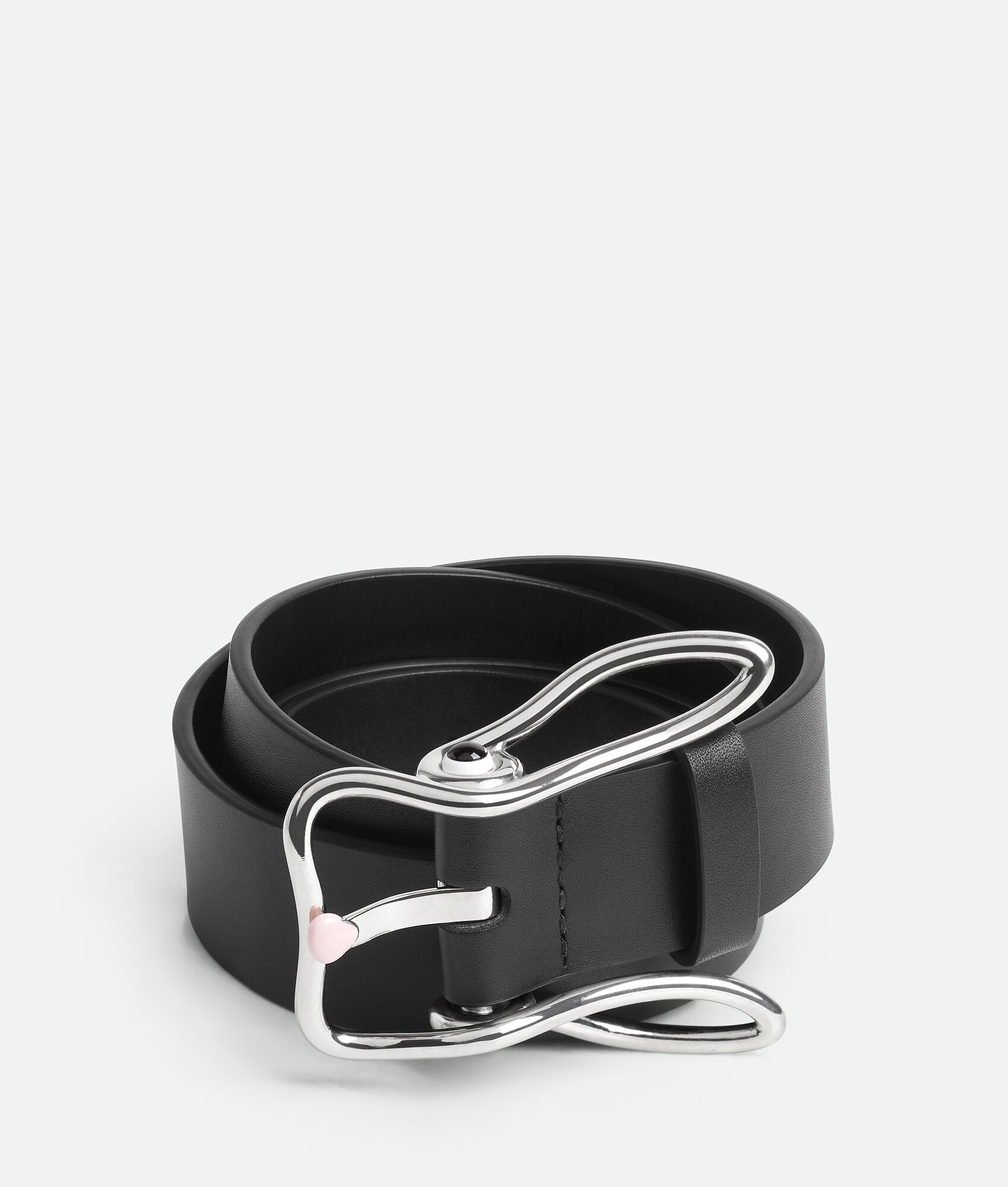 Calfskin leather belt with rabbit-shaped buckle. Product Details - Buckle closure - Material: Calfskin - Lining: Calfskin - Color: Black - Hardware: Silver finish - Height: 3.5 cm | 1.4" - Depth: 0.5 cm | 0.2" - Made in: Italy - Product code: 826856VALKO8803