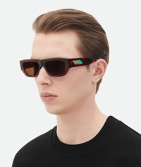 • Recycled acetate rectangular sunglasses • Metal ribbon with resin malachite inserts • Bio nylon lenses Material: Acetate • Color: Havana/Brown Made in: Italy