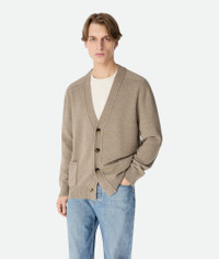 Cardigan in classic midweight cashmere with Intrecciato suede patches. Product Details - Midweight classic cashmere cardigan - Intrecciato suede patches detail - Button closure - Regular fit - Color: Beige - Made in: Italy - Product code: 835405V2MM09713 Size & Fit - Model is 185 cm | 6'1" and is wearing a Bottega Veneta size S