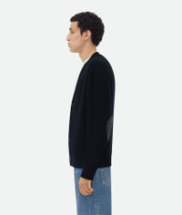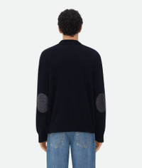 Cardigan in classic cashmere with signature Intrecciato leather patches. Product Details - Classic cashmere cardigan - Intrecciato leather patches detail - Button closure - Relaxed fit - Material: 97% Cashmere, 2% Polyamide, 1% Elastane - Color: Navy - Made in: Italy - Product code: 777588V2MM04121 Size & Fit - Model is 187 cm | 6'1" and is wearing a Bottega Veneta size S