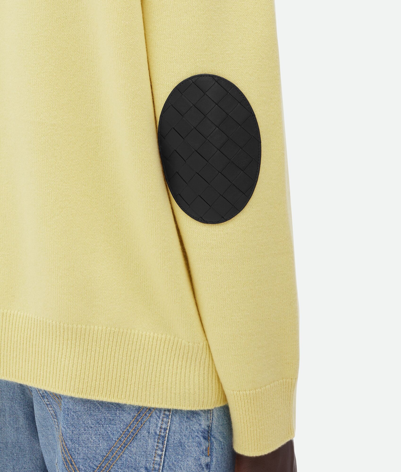 Cardigan in classic cashmere with signature Intrecciato leather patches. Product Details - Classic cashmere cardigan - Intrecciato leather patches detail - Button closure - Relaxed fit - Material: 97% Cashmere, 2% Polyamide, 1% Elastane - Color: Sherbert - Made in: Italy - Product code: 777588V2MM07400 Size & Fit - Model is 185 cm | 6' and is wearing a Bottega Veneta size S
