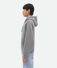 Compact cashmere hoodie. Product details • Compact cashmere hoodie • Relaxed fit Material: 100% Cashmere • Color: Light Gray Melange Made in: Italy Size & fit • Model is 186 cm|6'1" and is wearing a Bottega Veneta size S