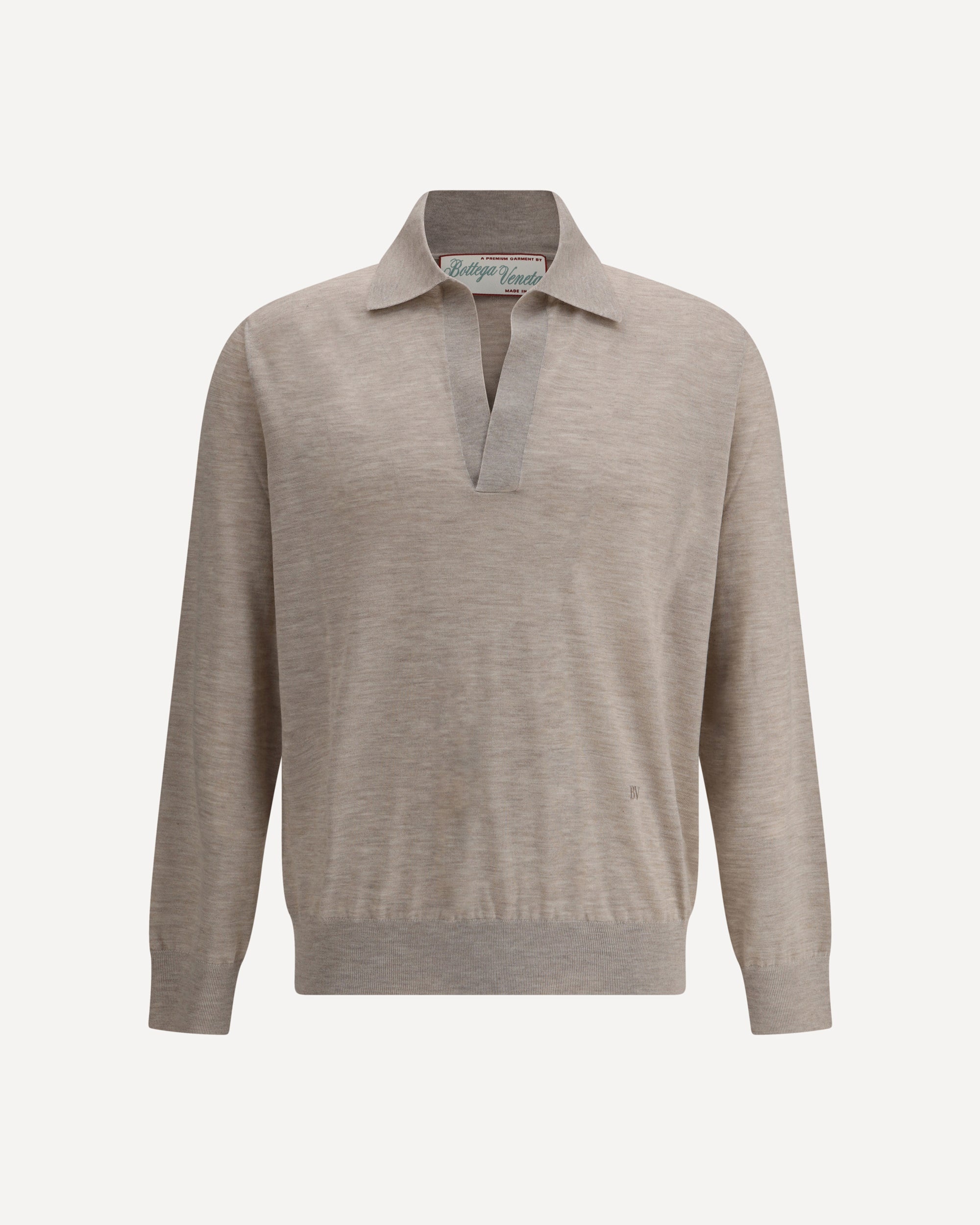 The Bottega Veneta cashmere Sweater is a refined and sophisticated piece, crafted from the highest quality materials. The classic collar adds an elegant and versatile touch, while the iconic BV logo is embroidered on the front, adding a distinctive accent to the design. The ribbed cuffs and hem offer a comfortable fit and a delicate texture, perfect for ensuring warmth and comfort without sacrificing style. DETAILS - Sku: 823317V4B70_9700 - Season: SS25 - Fit: Regular - Composition: GENERAL 100% Kashmir/capra Hircus - MADE IN ITALY