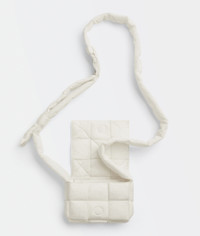 • Mini padded intreccio nylon cross-body bag • Single interior card slot • Magnetic closure Material: 100% Polyamide • Unlined • Color: White • Hardware: Silver finish • Height: 9 cm | 3.5" • Width: 13 cm | 5.1" • Depth: 4 cm | 1.6" • Strap drop: 58 cm | 22.8" Made in: italy