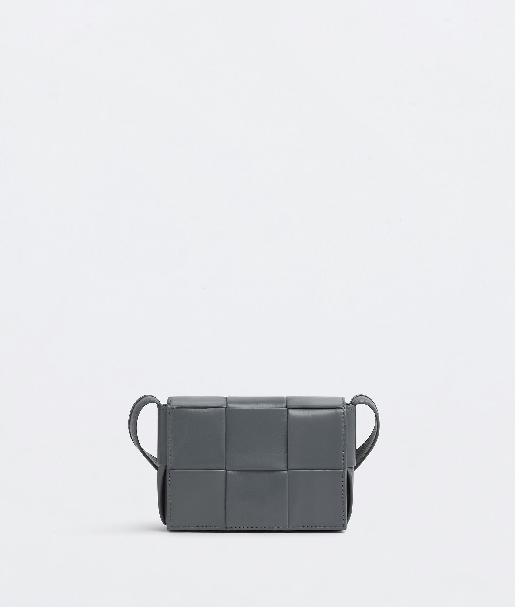 • Mini intreccio leather cross-body bag • Single interior card slot • Magnetic closure Material: 100% Calfskin • Unlined • Color: Thunder • Hardware: Silver finish • Height: 8 cm | 3.1" • Width: 12 cm | 4.7" • Depth: 4 cm | 1.6" • Strap drop: 57 cm | 22.4" Made in: italy