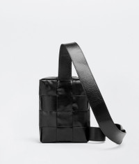 • Mini intreccio leather sling bag • Single interior open pocket • Zipper closure Material: 100% Calfskin • Unlined • Color: Black • Hardware: Silver finish • Height: 18 cm | 7.1" • Width: 13.5 cm | 5.3" • Depth: 4.5 cm | 1.7" Made in: italy
