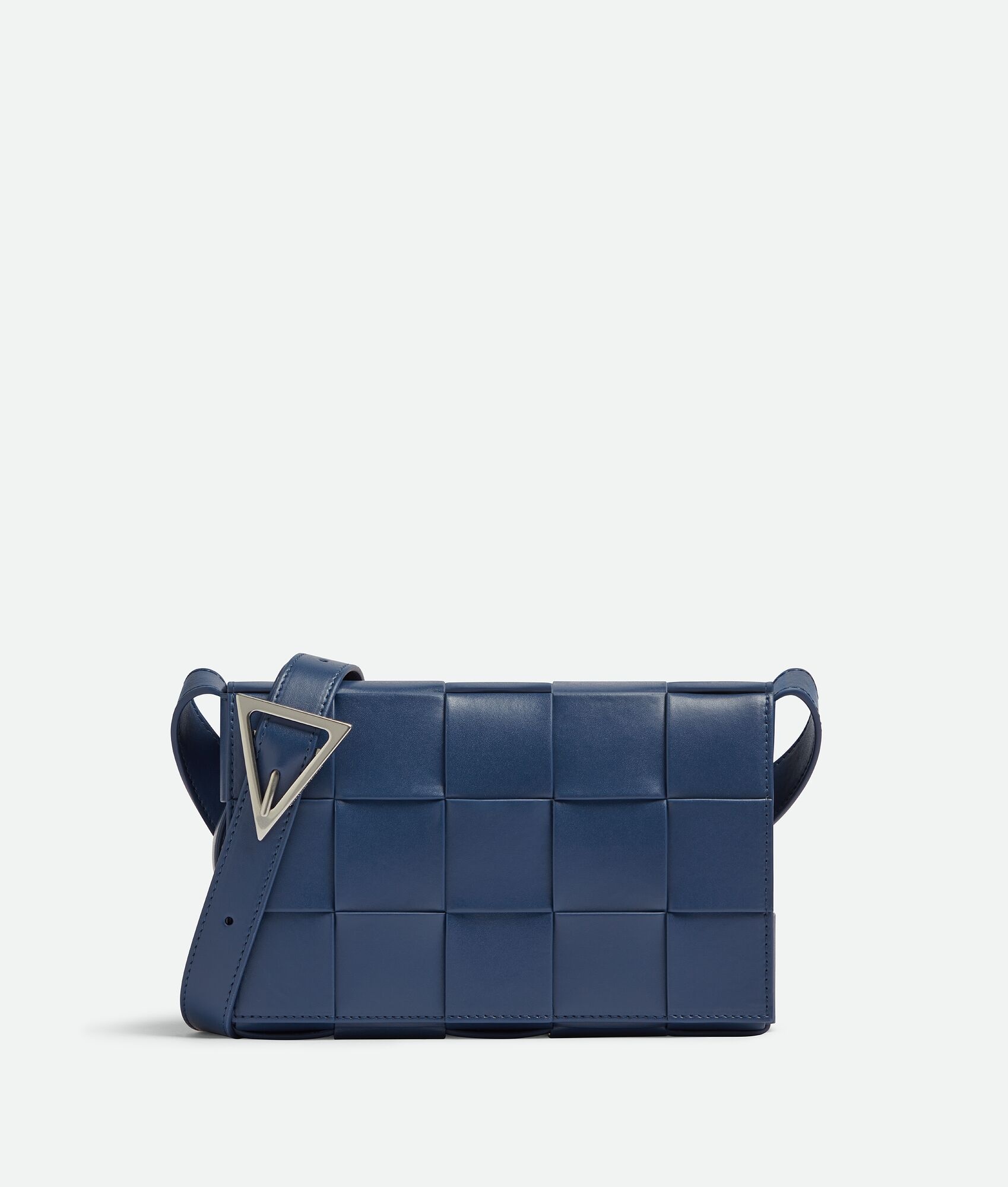 • Medium intreccio leather crossbody bag • Single interior zip pocket • Magnetic closure Material: 100% Calfskin • Lining: Calfskin • Color: Cruise • Hardware: Silver finish • Height: 15 cm | 5.9" • Width: 23 cm | 9.1" • Depth: 5 cm | 2" • Strap drop: 52 cm | 20.5" Made in: Italy