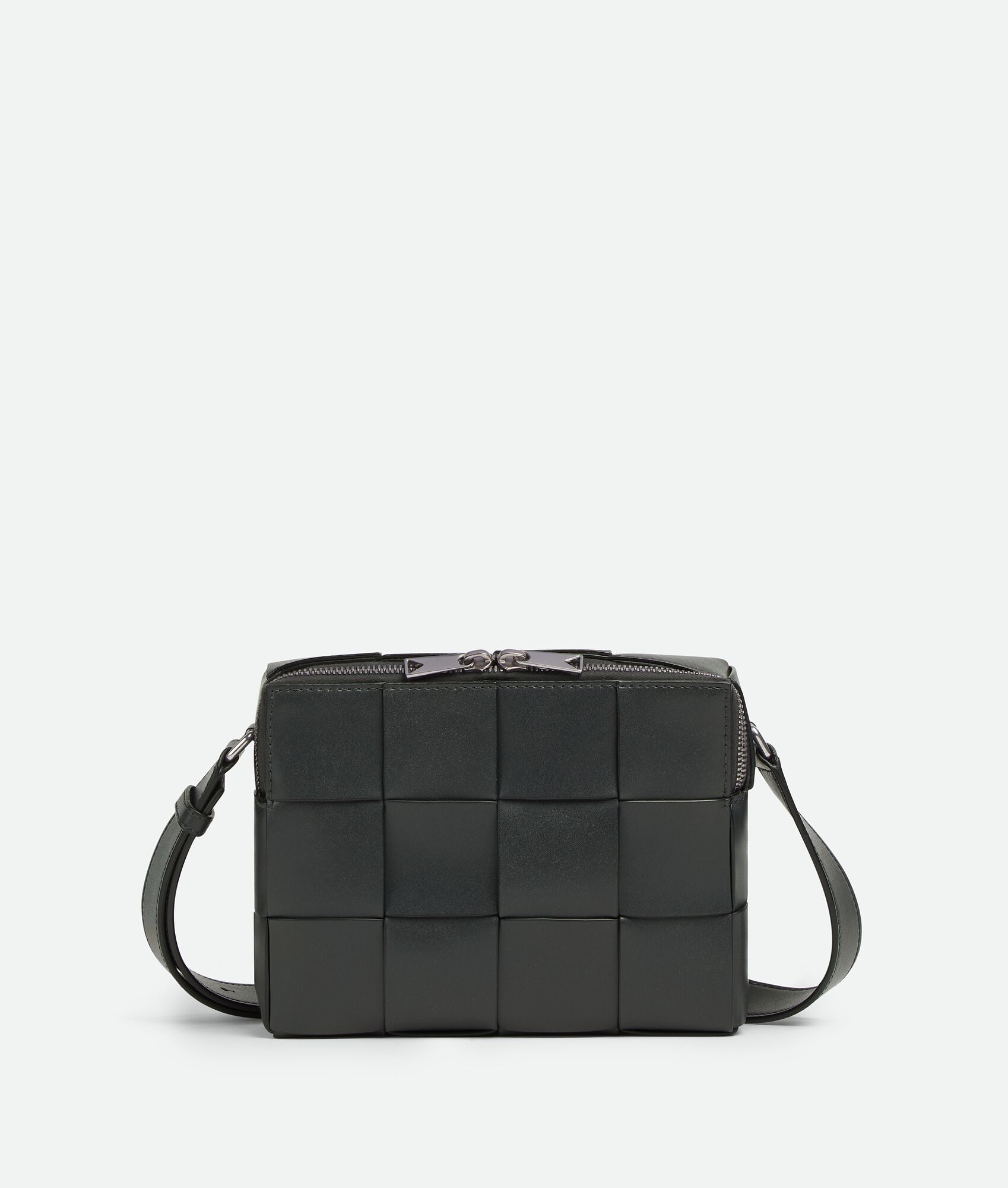 Cross-body bag realised with Intreccio craftsmanship in soft calfskin leather. Product details • Small Intreccio leather cross-body bag • Single compartment • Zipper closure Material: 100% Calfskin • Lining: Calfskin bonded Intreccio • Color: Ardoise • Hardware: Silver finish • Height: 15 cm | 5.9" • Width: 20 cm | 7.9" • Depth: 5 cm | 2" • Strap drop: 55 cm | 21.7" Made in: Italy