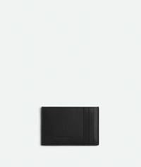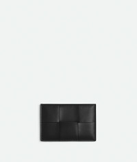 Product Details - Intreccio leather card case - Three card slots, one central pocket - Material: Calfskin - Lining: Calfskin - Color: Black - Height: 7.6 cm | 3" - Width: 11.4 cm | 4.5" - Depth: 0.5 cm | 0.2" - Made in: Italy - Product code: 748052VBWD38803