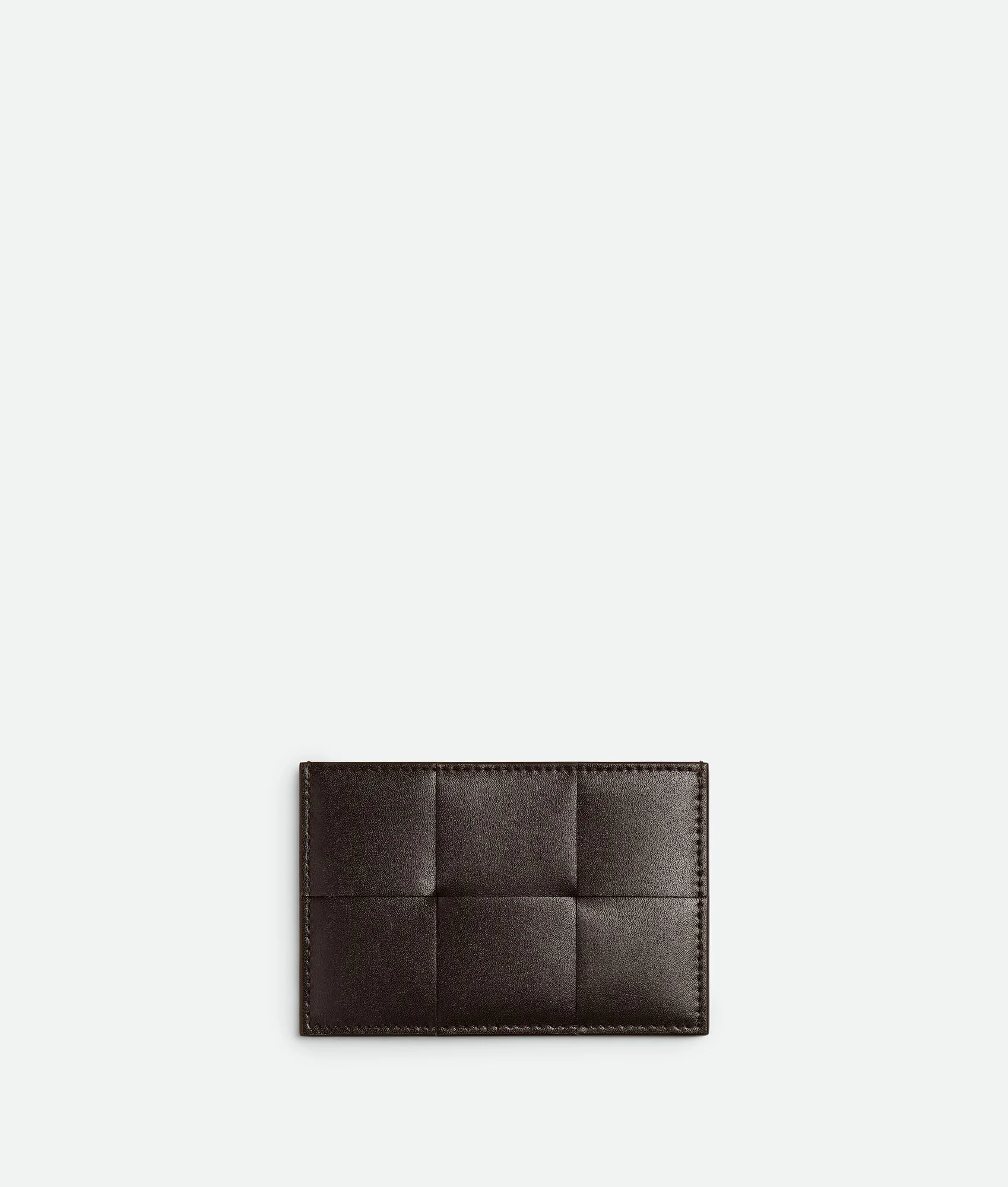 Credit card case in Intreccio calf leather with contrasted back. Product Details - Intreccio calf leather card case with contrasted back - Three card slots, one central pocket - Lining: Calf leather - Color: Fondant/Nocciola - Made in: Italy - Product code: 748052V5FD12797 Material - Material: Calfskin Size & Fit - Height: 7.6 cm | 3" - Width: 11.4 cm | 4.5" - Depth: 0.5 cm | 0.2"