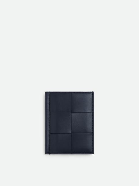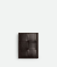 Flap card case in Intreccio calf leather with contrasted interior. Product Details - Intreccio calf leather card case with contrasted interior - Four card slots, one small bill compartment - Two additional compartments - Lining: Calf leather - Color: Fondant/Nocciola - Hardware: Silver finish - Made in: Italy - Product code: 787594VBWD52794 Material - Material: Calfskin Size & Fit - Height: 10 cm | 3.9" - Width: 9 cm | 3.5" - Depth: 1 cm | 0.4"