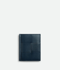 Intreccio calfskin leather card case with contrasted interior. Product Details - Four card slots, one small bill compartment - Two additional compartments - Material: calfskin - Lining: Calfskin - Color: Deep Blue/Ambra - Height: 10 cm | 3.9" - Width: 9 cm | 3.5" - Depth: 1 cm | 0.4" - Made in: Italy - Product code: 787594VBWD53358