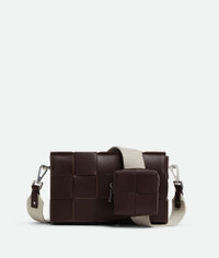 Cross/body realised with Intreccio craftsmanship in leather and slide/on zipped coin Product Details - Medium Intreccio leather cross/body bag - Detachable and adjustable strap in contrasted canvas with one Intreccio leather slide/on zippered pouch for AirPods - Single interior zippered pocket - Magnetic closure - Material: Calfskin - Lining: Calfskin bonded Intreccio - Color: Fondant/Natural - Hardware: Silver finish - Height: 15 cm | 5.9" - Width: 23 cm | 9.1" - Depth: 5 cm | 2" - Strap drop: 40 cm | 15.7" - Made in: Italy - Product code: 741777V2XU12094