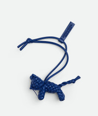 Charm realized in Intreccio nappa leather with cat shape, featuring a leather lanyard. Product Details - Intreccio nappa leather cat charm with leather lanyard - Bottega Veneta leather tag - Leather lanyard designed to be attached to any handle - Lining: Unlined - Color: Royal Blue - Made in: Italy - Product code: 835969V3D814296 Material - Material: Lambskin Size & Fit - Height: 5 cm (2.0") - Width: 8 cm (3.1") - Depth: 6 cm (2.4") - Handle drop: 17 cm (6.7")