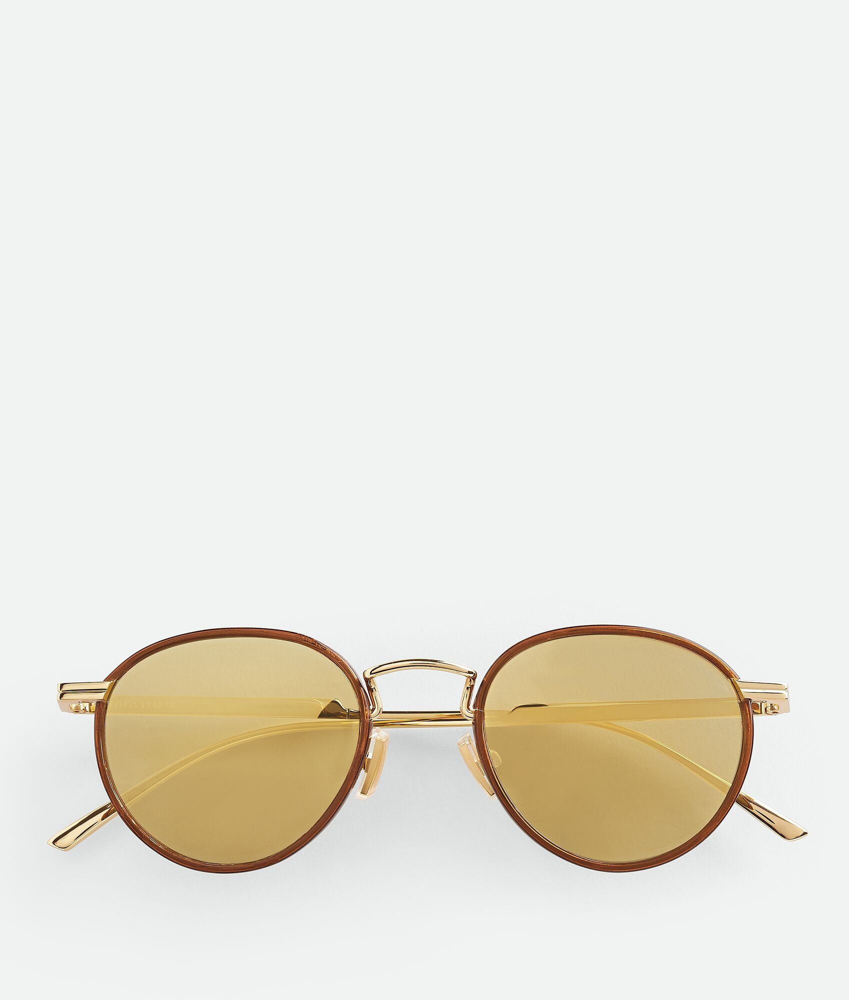 Panthos sunglasses with Windsor rim in metal. Product Details - Windsor rim around the lenses - Lenses made from polyamide with 39% bio-based content - BV1389S 004 - Material: Metal - Color: Gold/Gold - Made in: Japan - Product code: 821382V44508020