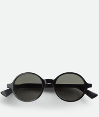 Round sunglasses in recycled acetate with signature gold-finished ribbon detailing. Product Details - Round sunglasses made with Eastman Acetate Renew, an acetate with 27% recycled content - Lenses made from polyamide with 39% bio-based content - Gold-finished ribbon detail at the temples - Lens width: 48 mm | 1.9"; Bridge length: 20 mm | 0.8"; Temple length: 145 mm | 5.7" - BV1430S 001 - Color: Black/Gray - Made in: Italy - Product code: 841239V2Q301049 Material - Material: Recycled acetate