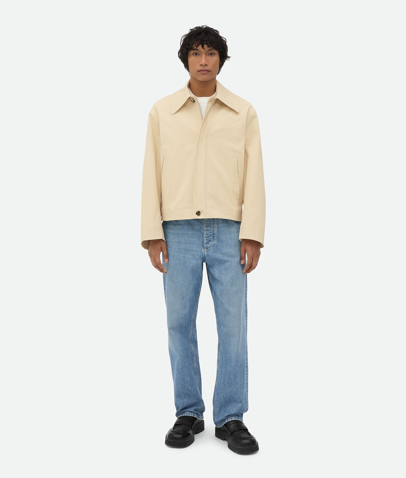 Blouson realised in coated cotton with a matte finish. Product Details - Coated cotton blouson - Zip and button closure - Fully lined - Regular fit - Material: Cotton, Elastane - Color: Ecru - Made in: Italy - Product code: 783308V3YN09609