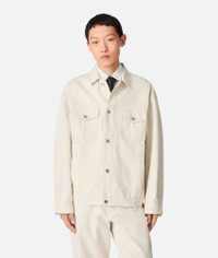 Jacket in coloured stone washed denim. Product Details - Stone washed colored denim jacket - Intrecciato suede back patch - Button closure - Unlined - Button closure - Material: 100% Cotton - Color: Pale Meringue - Made in: Italy - Product code: 824657V5DV09247 Size & Fit - Model is 188 cm|6'2" and is wearing a Bottega Veneta size 46