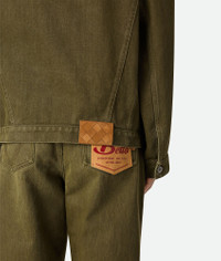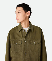 Jacket in coloured stone washed denim. Product Details - Stone washed colored denim jacket - Intrecciato suede back patch - Button closure - Unlined - Material: 100% Cotton - Color: Caper Stone Washed - Made in: Italy - Product code: 824657V5DV04056 Size & Fit - Model is 188 cm|6'2" and is wearing a Bottega Veneta size 46
