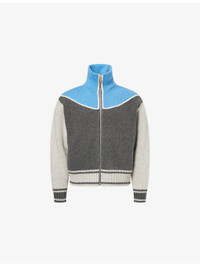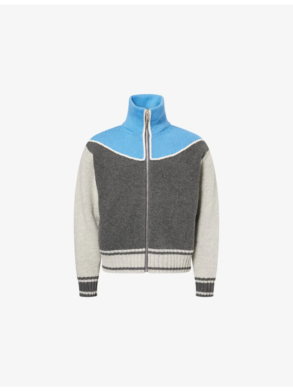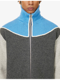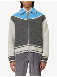 PRODUCT DETAILS - Bottega Veneta knitted jacket - 100% wool - Zip fastening - Relaxed fit, spread collar, long sleeves, knitted colour block design, ribbed trims - Dry clean - Model is 6ft 2in/1.88m and wears a size medium - Midweight, slight stretch Ref: R04509169
