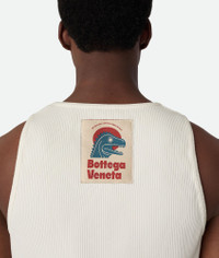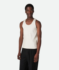 Tank top in compact cotton rib jersey. Product Details - Compact cotton rib jersey tank top - Special label on the back - Regular fit - Material: 93% Cotton, 7% elastane - Color: Chalk - Made in: Italy - Product code: 838950V3Z609071 Size & Fit - Model is 188 cm | 6'2" and is wearing a Bottega Veneta size S