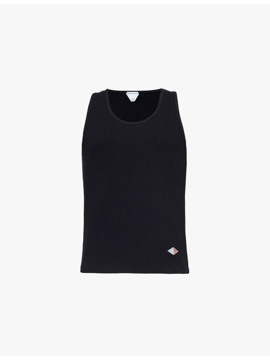PRODUCT DETAILS - Bottega Veneta stretch-cotton top - 93% cotton, 7% elastane - Pulls on - Regular fit, scoop neck, sleeveless, brand patch at front, all over ribbed - Hand wash cold - Made in Italy - Model is 6ft 2in/1.88m and wears a size medium - Lightweight, stretchy Ref: R04304749