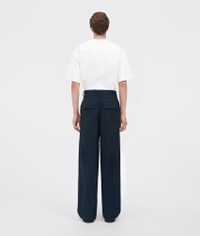 • Compact cotton wide leg trousers • Zip, button, and hook closure Material: 100% Cotton • Color: Abyss Made in: Italy