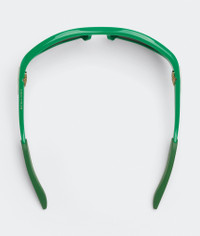 • Injection wraparound sunglasses • Rubber end tips Material: Injected acetate, Rubber • Color: Green/Green Made in: Japan