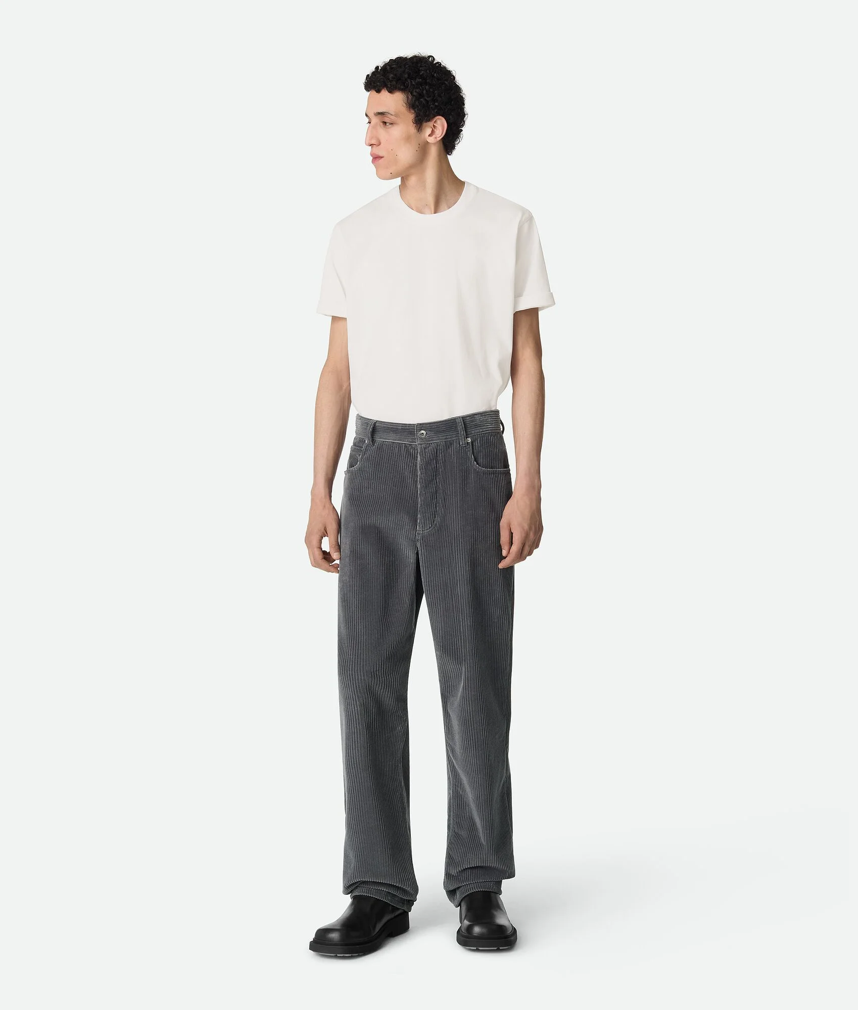 Trousers with wide leg in matte cotton corduroy. Product Details - Matte cotton corduroy pants - Wide leg - Button closure - Lined - Color: Thunder - Made in: Italy - Product code: 837137V5O001230 Material - Material: 100% cotton Size & Fit - Model is 186 cm|6'1" and is wearing a Bottega Veneta size 46