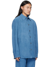 Blue Embossed Corduroy Suede Shirt