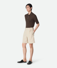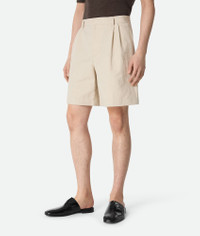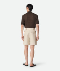 Shorts with straight leg in lightweight cotton and linen twill. Product Details - Cotton and linen twill shorts - Straight leg - Triangle pocket detail - Zipper and hook closure - Lined - Material: 53% Linen, 47% cotton - Color: Chalk/Rock Melange - Made in: Italy - Product code: 836021V5P909255 Size & Fit - Model is 189 cm|6'2" and is wearing a Bottega Veneta size 46
