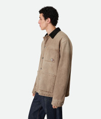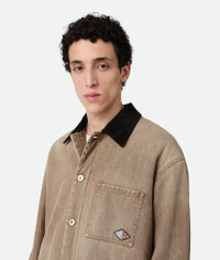Jacket in brown washed denim with contrasted suede collar featuring a corduroy effect. Product Details - Brown washed denim jacket - Contrasting suede collar with a corduroy effect - Lined in wool - Button closure - Relaxed fit - Color: Brown - Made in: Italy - Product code: 813522V4ZN02082 Material - Material: 100% cotton