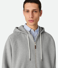 Zipped hoodie in heavyweight cotton fleece. Product Details - Cotton fleece hoodie - Zipper closure - Regular fit - Color: Pale Gray Melange - Made in: Italy - Product code: 834331V5O401692 Size & Fit - Model is 188 cm | 6'2" and is wearing a Bottega Veneta size S