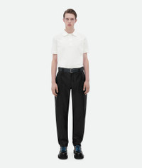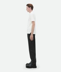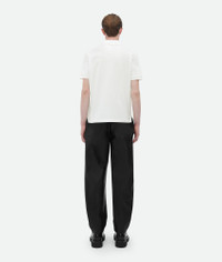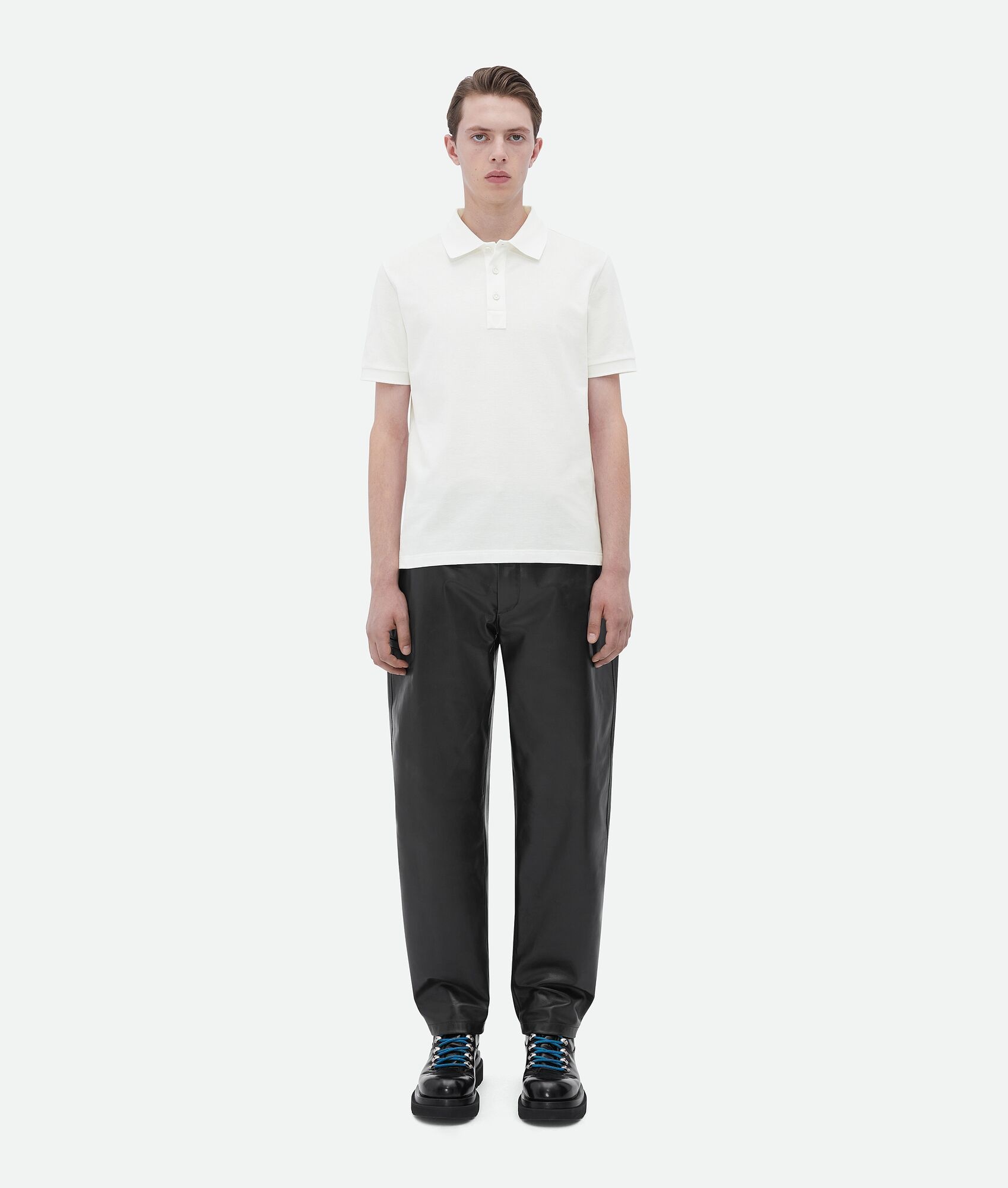 Cotton piquet jersey polo. Product details • Cotton piquet jersey polo • "Bottega" tonal embroidery on back • Button closure • Regular fit Material: 100% Cotton • Color: Chalk Made in: Italy Size & fit • Model is 187 cm | 6'1" and is wearing a Bottega Veneta size S