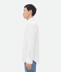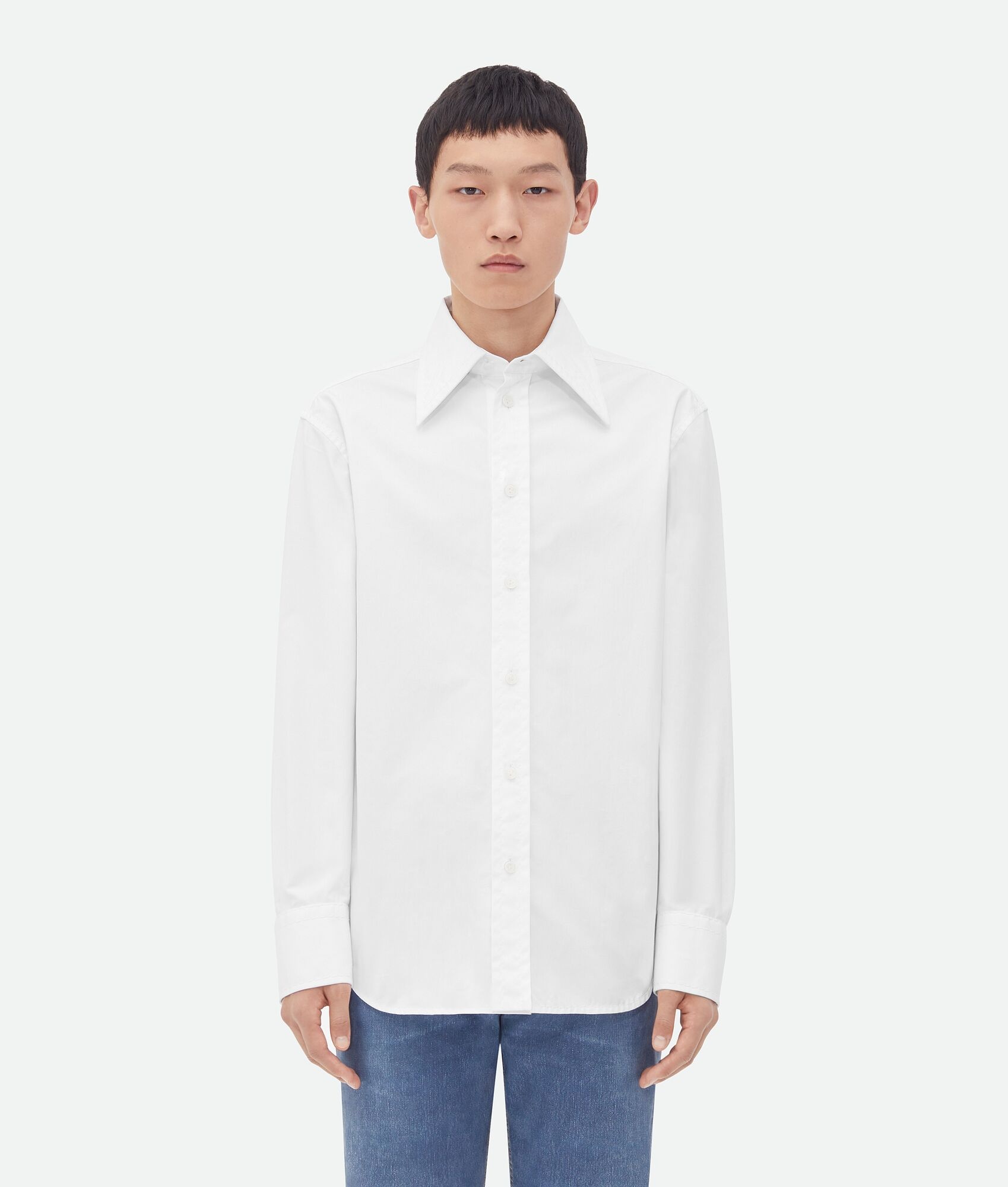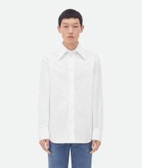 Shirt with top stitch detailing realised in soft compact cotton canvas. Product Details - Cotton canvas shirt - Button closure - Regular fit - Material: 100% Cotton - Color: White - Made in: Italy - Product code: 767918V2BL09000 Size & Fit - Model is 188 cm|6'2" and is wearing a Bottega Veneta size 46