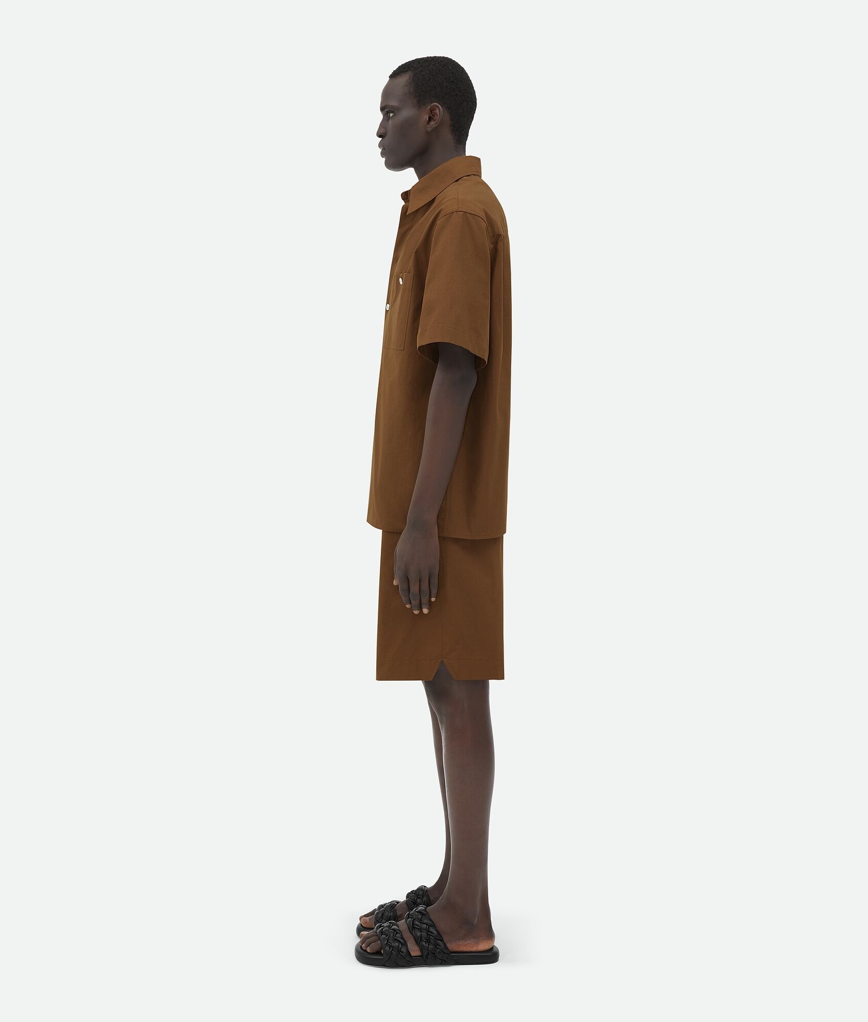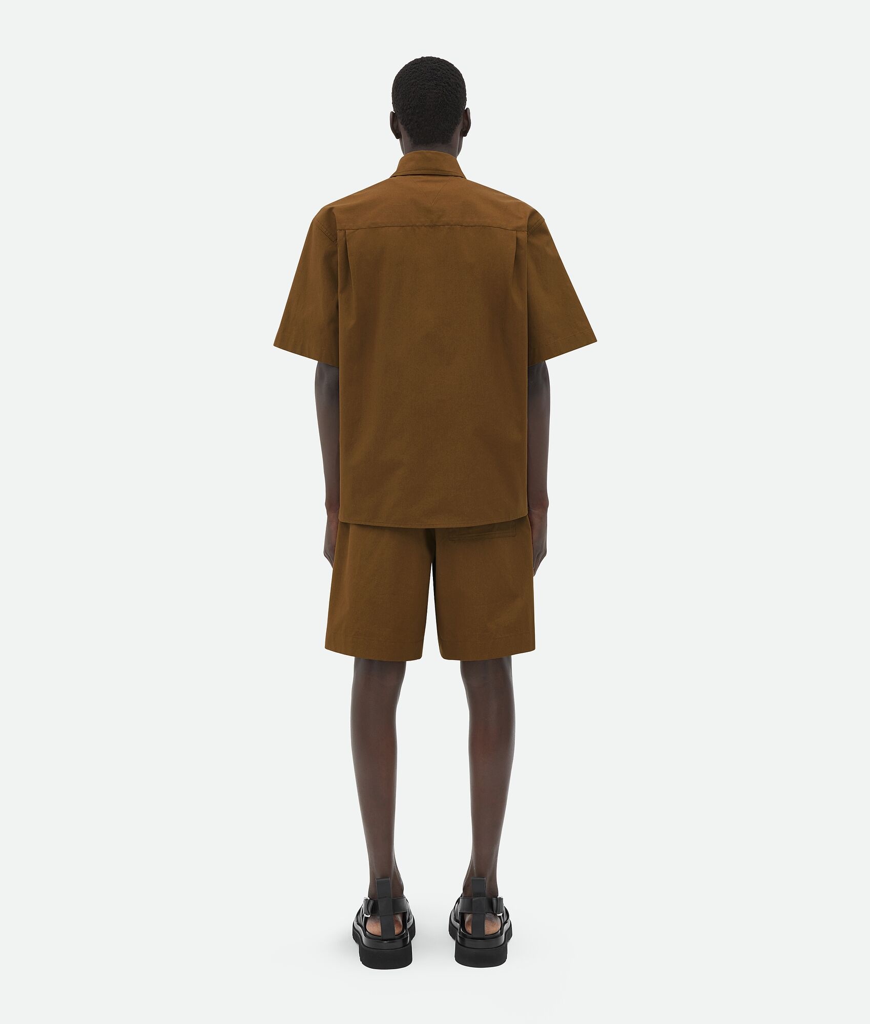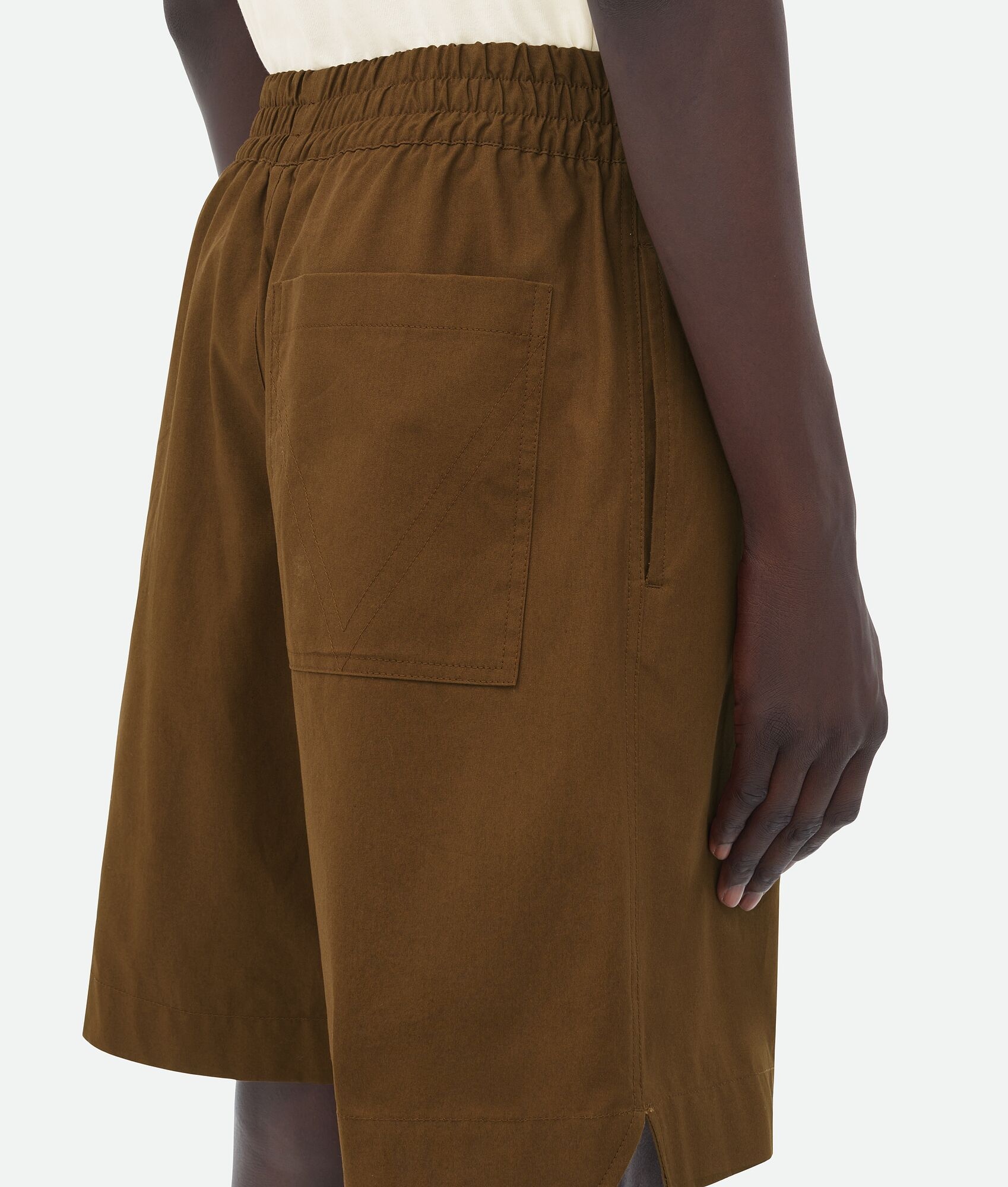 Compact cotton canvas shorts. Product Details - Compact cotton canvas shorts - V stitching on the back pocket - Elasticated waistband - Zipper closure - Material: 100% Cotton - Color: Cedar - Made in: Italy - Product code: 744304V2BL02030 Size & Fit - Model is 185 cm|6' and is wearing a Bottega Veneta size S