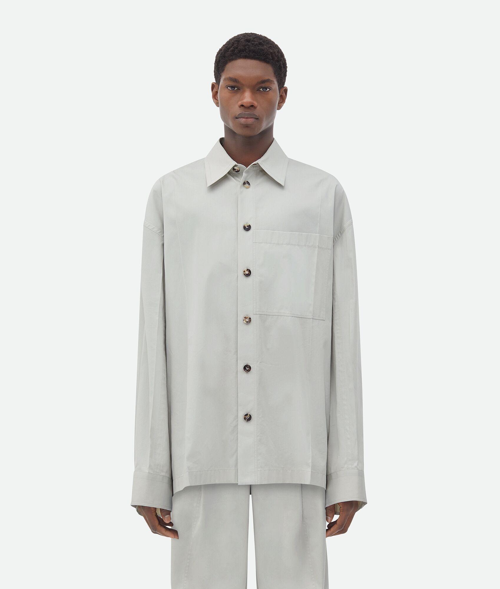 Product Details - Technical cotton and silk shirt - Button closure - Relaxed fit - Material: Cotton, Silk - Color: Cloud - Made in: Italy - Product code: 782607V3YS05209 Size & Fit - Model is 189 cm|6'2" and is wearing a Bottega Veneta size 46