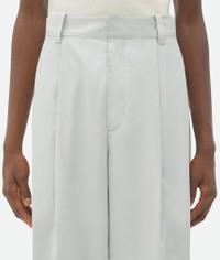 Product details • Technical cotton and silk trousers • Zip, button and hook closure • Wide leg Material: 87% Cotton, 13% Silk • Color: Cloud Made in: Italy Size & fit • Model is 189 cm|6'2" and is wearing a Bottega Veneta size 46