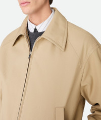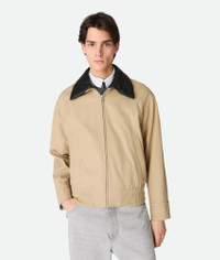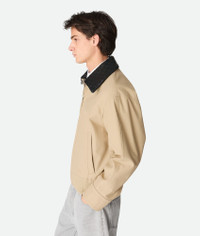 Blouson in fluid cotton twill with detachable Intrecciato leather collar. Product Details - Fluid cotton twill blouson - Detachable Intrecciato leather collar - Zip closure - Checked lining - Regular fit - Material: 100% Cotton - Color: Beige - Made in: Italy - Product code: 826428V5CV09713 Size & Fit - Model is 189 cm|6'2" and is wearing a Bottega Veneta size 46
